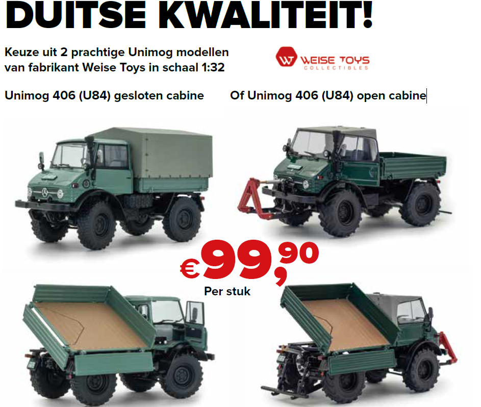Keuze uit 2 prachtige Unimog modellen van fabrikant Weise Toys in schaal 1:32