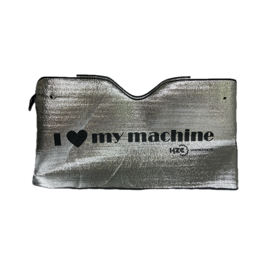 Auto winter-/zonnewering met aluminium rug. Het scherm heeft een HZC logo en dient onder de wissers geplaatst te worden of kan met zuignappen worden bevestigd.